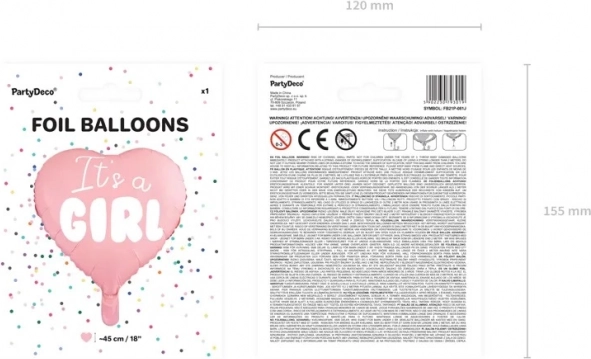 Balónek se snadno plní heliem nebo vzduchem a vydrží dlouho plněný. Jemný růžový tón s vysoce kvalitním potiskem 'It's a Girl' dodává celé dekoraci šmrnc a eleganci.