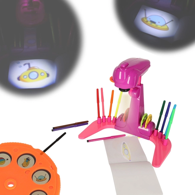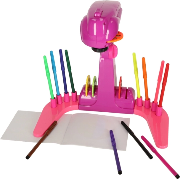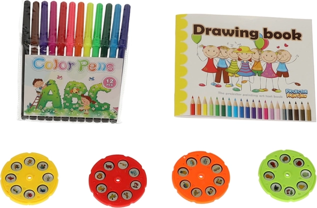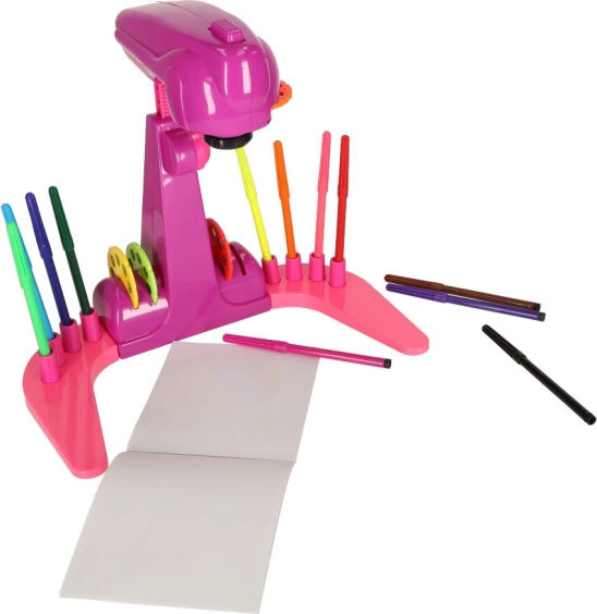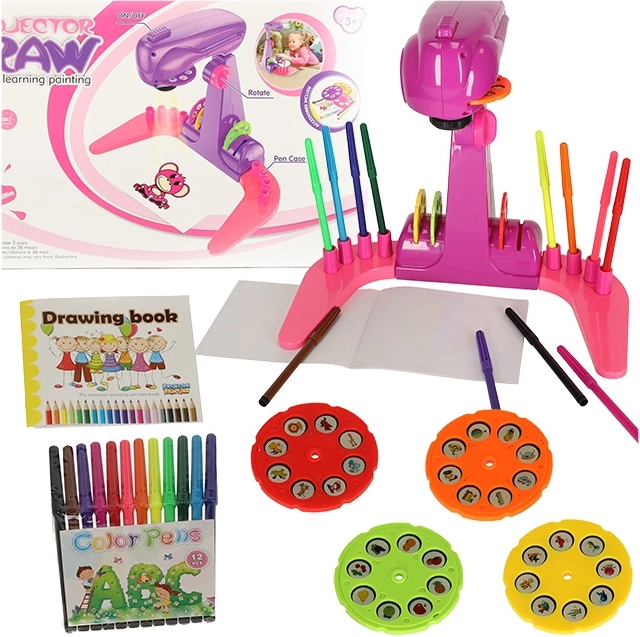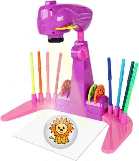Kreslící projektor SLAYS FIOLET Fantastický projektor, který nepochybně povzbudí všechny děti k malování a kreslení. Živé, teplé barvy upoutají pozornost vašeho dítěte a malováním stráví spoustu času! A jak taková hračka funguje? Stačí vložit 3 baterie AA, vybrat jeden ze čtyř disků a vložit jej do projektoru. Na každém disku je 8 obrázků, které můžete pohybem disku měnit. Pak jej spusťte, nastavte výšku a můžete se pustit do kreslení!" Obrázky můžete vytvářet na přiloženém malovátku nebo na samostatných listech papíru. Hotové kresby si budete moci pověsit na ledničku nebo zarámovat - aby je mohl každý obdivovat. Sada obsahuje 12 barevných fixů, které vám umožní bez námahy vytvořit všechny přiložené vzory! 4 přiložené disky obsahují celkem 32 různých obrázků. Pro vaše dítě bude jistě velkou zábavou je všechny dokončit! Součástí zpětného projektoru jsou speciální místa pro všechny disky a barevné fixy. To usnadní udržování pořádku na stole při malování. Kreslení má velký vliv na manuální dovednosti dítěte - zlepšuje přesnost ruky i přesnost prstů. Čím dříve začne malovat, tím snadněji bude později zvládat dovednosti, jako je mimo jiné psaní. Pozadu nezůstane ani kreativita a představivost - vytváření stále nových a složitějších obrázků umožní každému dítěti rozkvět! Hra s projektorem také naučí rozlišovat barvy, vytvářet a rozpoznávat nové tvary. skvělý jako dárek - poskytne nejen obrovské množství potěšení, ale také správný rozvoj vašeho dítěte.Může to být začátek úžasné vášně vašeho dítěte! Obsah sady: zpětný projektor 12 fixů 4 disky s 8 obrázky malovací brožuraNapájení: 3x baterie AA (nejsou součástí balení)Materiál: plastVěk dítěte: od 1 roku do 3 let:Rozměry:Projektor: 30,5 cm × 18,5 cm × 26 cmVýška projektoru od země: 26 cm - 35 cm (nastavitelná)Balení: 39 cm x 24 cm x 8,5 cmBaleno v atraktivní kartonové krabici.