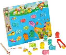 Tato kreativní montessori sada nabídne dětem hned tři způsoby hraní: lovení rybiček na magnet s prutem, vkládání rybiček s čísly do správných otvorů a trénink jemné motoriky s včelkami pomocí pinzety. Pestrobarevné prvky motivují ke hře, zatímco kvalitní dřevěné provedení se zaoblenými hranami zajišťuje bezpečnost.