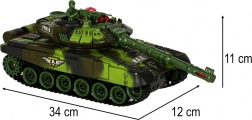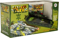 RC tank v kamufláži přináší napínavou akční hru doma i na zahradě. Věž se plynule otáčí, kanón simuluje zpětný ráz a při přesném zásahu zhasínají kontrolky protivníka. Po třech zásazích je soupeřův tank na krátkou dobu vyřazen – bitva se pak může začít odznova. Ovládání 2.4 GHz zaručuje stabilní dosah a možnost soubojů více hráčů bez rušení.