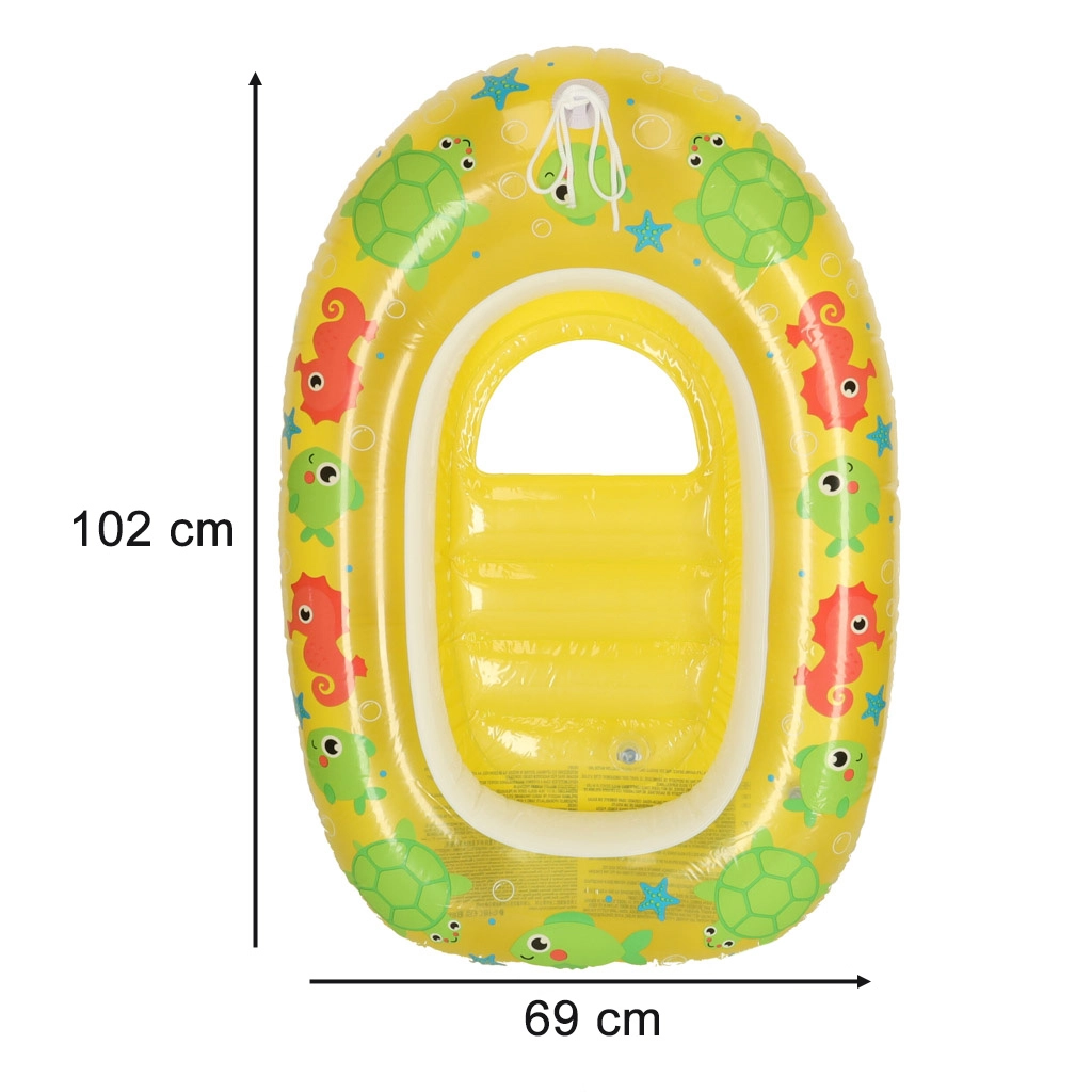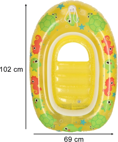 Lehké a stabilní nafukovací kolo do vody pro nejmenší od značky BESTWAY přináší bezpečnou a pohodlnou zábavu u vody. Žlutý design s mořskými motivy želviček a mořských koníků, měkké nafukovací dno a pevný okraj pro lepší stabilitu zaručí radost z každého koupání.