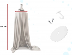 Šedý závěsný baldachýn je krásný doplněk do dětského pokoje, který dodá interiéru pohodlí, soukromí a kouzelnou atmosféru. Díky měkkému splývavému materiálu se skvěle hodí nad postýlku, hrací matraci nebo do čtecího koutku.