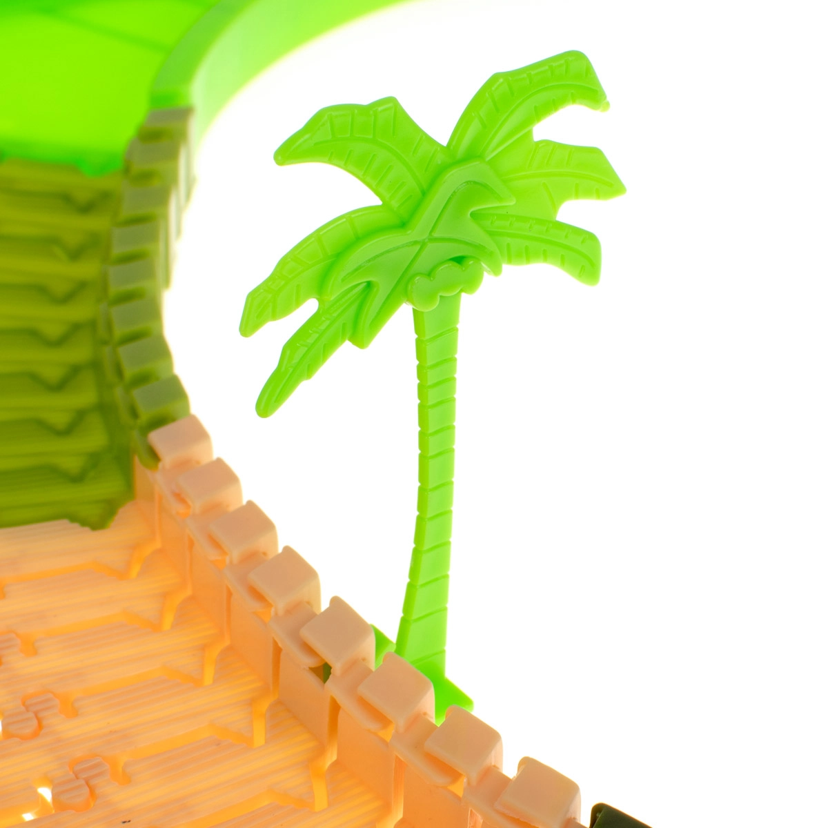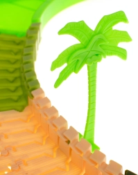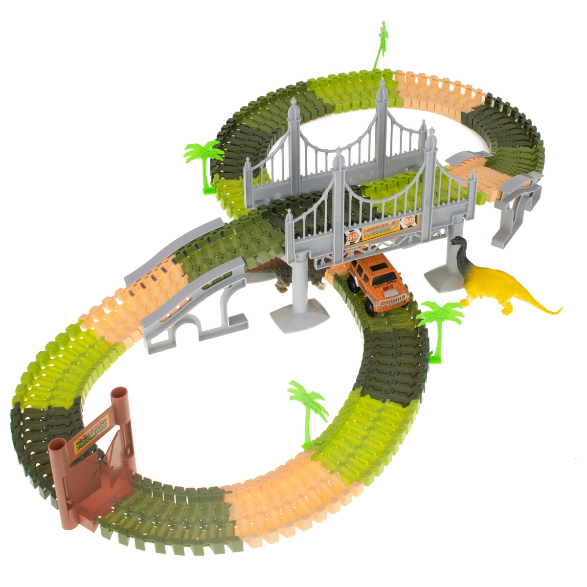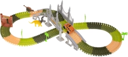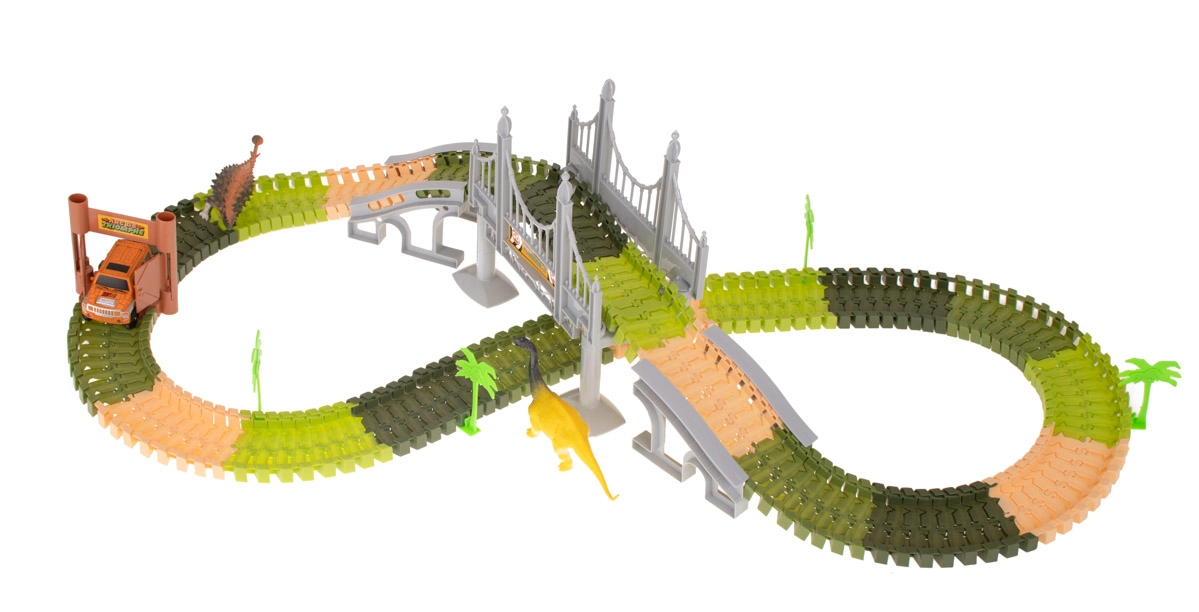 Sada obsahuje: 160 dílů dráhy, autíčko, 2 dinosaury, 4 palmy, most a bránu. Autíčko je poháněno 1 baterií AA 1,5V, která není součástí balení. Všechny díly dráhy se snadno skládají a jsou velmi flexibilní pro různé tvary a varianty.