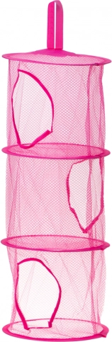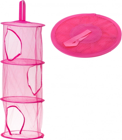 Praktický závěsný organizér s 3 prostornými přihrádkami udrží pořádek v dětském pokoji a ušetří místo na podlaze. Lehká síťovaná konstrukce z odolného polyesteru s kovovým rámem umožňuje rychlou identifikaci obsahu a snadné zavěšení na dveře či stěnu. Elegantní tmavě růžové provedení se hodí do každého interiéru.