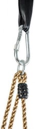 Pevná karabina a spletené lano zajišťují spolehlivé uchycení i při intenzivním používání. Maximální nosnost 75 kg.