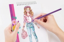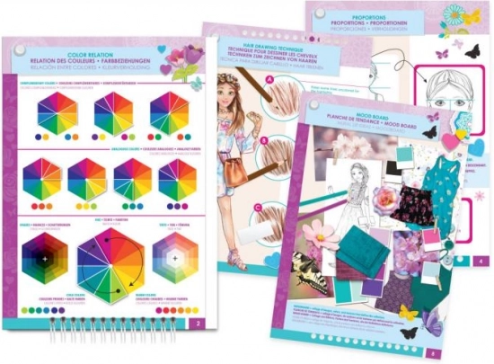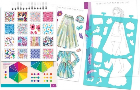Návrhářské portfólio s motivem květin nabízí dětem možnost rozvíjet kreativitu s více než 120 šablonami a nálepkami, ideální pro mladé návrháře.