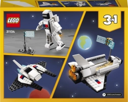 Tento LEGO Creator 3v1 set obsahuje tři různé modely. Můžete postavit kosmický raketoplán, přestavět ho na pohyblivou figurku astronauta s tryskovým batohem a vlajkou k zapíchnutí na planetu, nebo vytvořit impozantní model kosmické lodi.