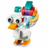 Objevte svět fantazie se stavebnicí LEGO Creator 3 v 1 Kouzelný jednorožec. Děti od 7 let si užijí tvoření i hraní s třemi modely v jednom – jednorožcem, mořským koníkem a pávem. Pohyblivé části, barevný design a možnost vystavení na stojánku promění každé hraní v magické dobrodružství.