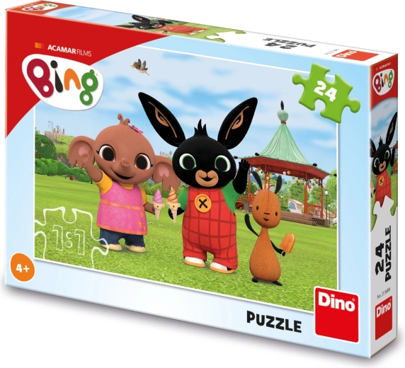Zábavné dětské puzzle s motivem BING přináší 24 velkých dílků, ideálních pro malé ručičky. V barevné scéně si Bing, Sula a Flop užívají zmrzlinu na trávníku. Skládání podporuje jemnou motoriku, logické myšlení a fantazii dětí od 4 let. Vyrobeno v ČR z kvalitní, zdravotně nezávadné lepenky.
