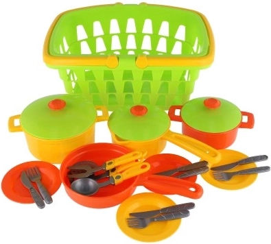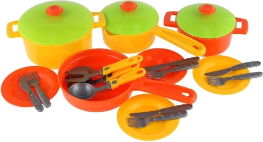 Tato kuchyňská sada je dokonalým doplňkem pro každé dítě milující vaření. Sada obsahuje 28 kusů jako jsou konvice, pánev, dva hrnce s pokličkami, talíře, hrnky a lžičky. Odolný plast zajišťuje dlouhou životnost a barevné provedení přitahuje dětskou pozornost, podporuje kreativní hry a rozvoj motorických dovedností.