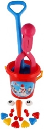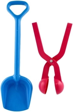 Vše, co potřebujete pro snadné a zábavné stavění sněhuláka - kbelík, lopatka a tvořítka.