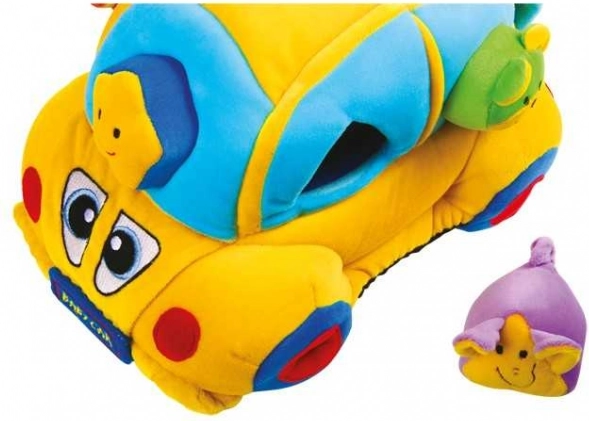 Objevte zábavné textilní auto s přátelským obličejem, které je navrženo jako bezpečná vkládací hračka pro batolata. Měkké tělo z plyše je příjemné na dotek a jednotlivé tvary při manipulaci šustí, pískají nebo jemně cinkají. Jeden z prvků obsahuje zrcadlovou fólii, která děti láká k objevování a podporuje vizuální vnímání.