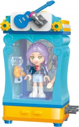 Postavte barevné pódium s mikrofonem, motivy kytary a výměnnými prvky pro dokonalé vystoupení vaší minifigurky zpěvačky.
