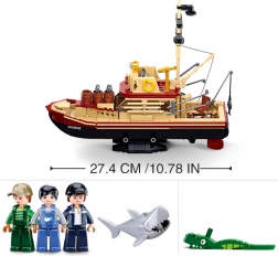Stavebnice rybářské lodě Catherine přináší radost z modelování a je ideální pro děti i dospělé, kteří milují výzvy. Sestavená loď měří přes 27 cm a je doplněna realistickým žralokem. Stavebnice obsahuje tři inovativní figurky s otáčivými a výkyvnými částmi těl, což zajišťuje větší flexibilitu při hraní.