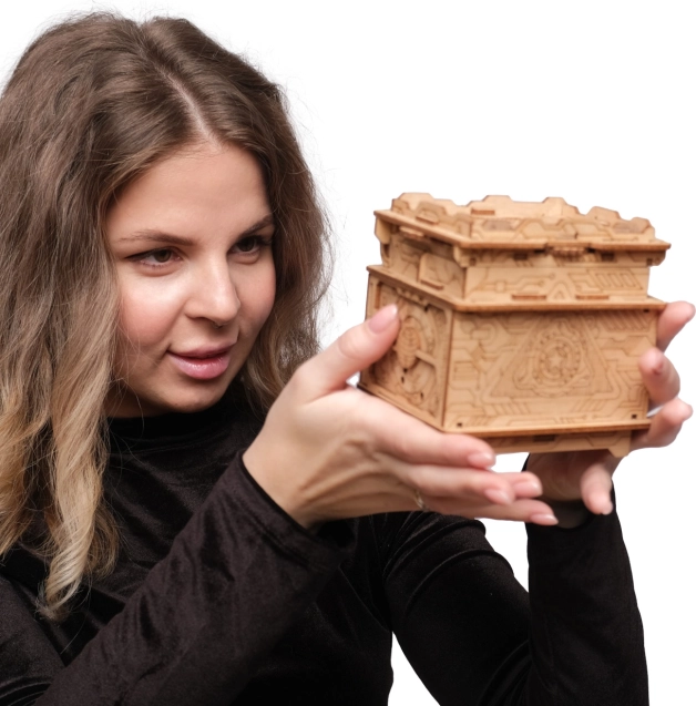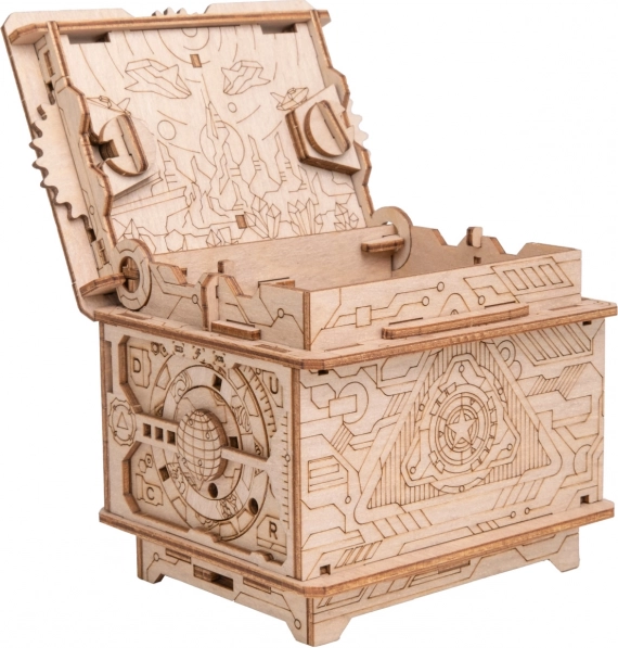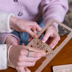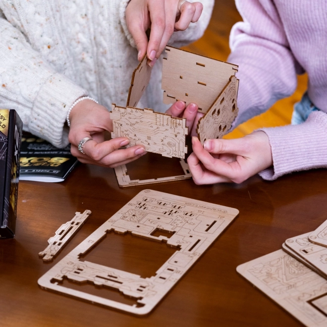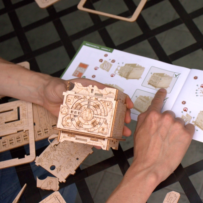 88 očíslovaných dílků z březové překližky do sebe přesně zapadá, takže model snadno postavíte i bez zkušeností. Přiložený obrázkový návod a QR kód s nápovědou vás spolehlivě provedou celým procesem až k prvnímu odemknutí.