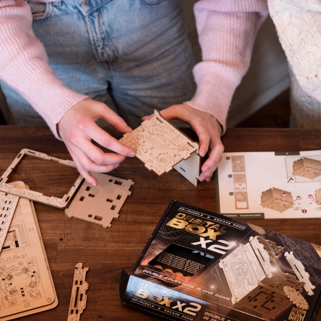 Vstupte do světa domácí únikové hry s modelem ESCAPEWELT ORBITAL BOX. Díky přesným laserovým výřezům a přehlednému ilustrovanému návodu krabičku spolehlivě složíte bez lepidla a nářadí. Po sestavení na vás čeká série chytrých mechanismů, symbolů a kombinací, které musíte rozluštit, abyste odemkli skrytou přihrádku.