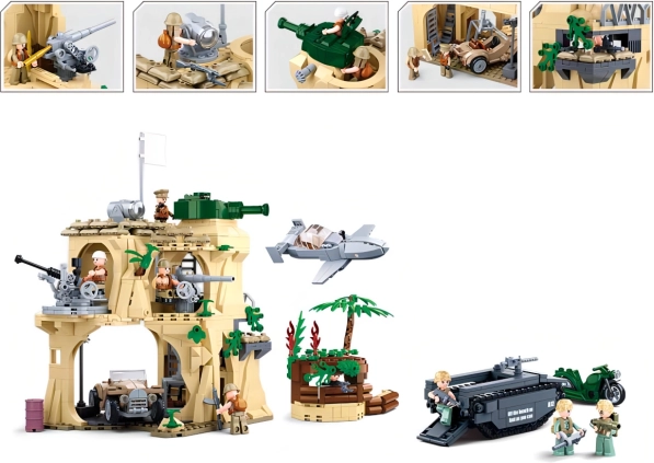 Propracovaná stavebnice inspirovaná bitvou o Iwodžimu přináší vše, co děti i sběratelé potřebují k napínavé akční hře. V balení najdete vícepodlažní pevnost s obrannými prvky, dopravní i bojovou techniku a sadu minifigurek s pohyblivými částmi pro realistické scénáře. Střední obtížnost stavby nabízí příjemnou výzvu bez zbytečné frustrace.