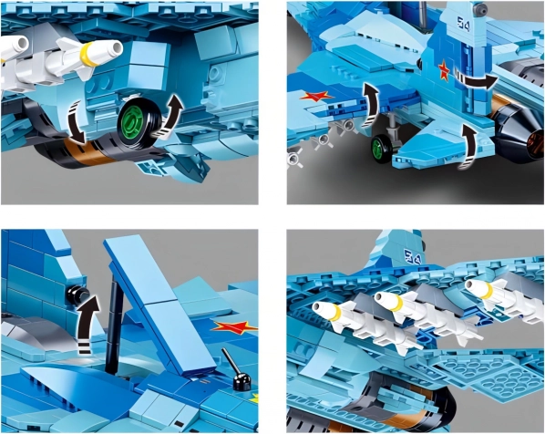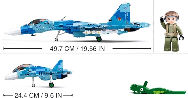 Užijte si detailní stavbu realistického stíhacího letounu SU‑27. Sada umožňuje postavit dvě různé varianty (šířky 49,7 cm a 24,4 cm) v atraktivním modrém provedení. Díky kvalitnímu ABS plastu je model pevný, odolný a vhodný pro dlouhodobé hraní i vystavení.