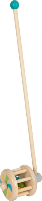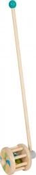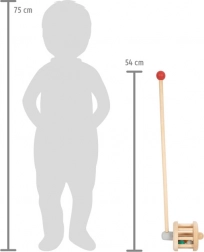 Tento dřevěný jezdík slouží také jako chrastítko a je bezpečným a odolným společníkem pro každé batole. Pestrobarevné kuličky po zatlačení na jezdíka divoce poskakují kolem dřevěného bubnu a vydávají zábavný zvuk.