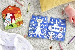 Sešit je vyroben z odpovědně získaného FSC papíru, takže si děti užijí tvoření s respektem k přírodě. Jednoduché a roztomilé tvary podněcují fantazii i soustředění a jsou ideální na doma i na cesty.