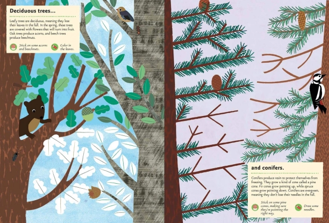 Tato originální kniha aktivit dětem hravou formou přibližuje rozmanitost lesního světa – od šišek a mechů po květiny a bobule. Díky samolepkám a kreslení se malí badatelé naučí poznávat přírodu a rozvíjet své dovednosti. Ilustrace od Olivia Cosneau dodávají knize jedinečný výtvarný styl.