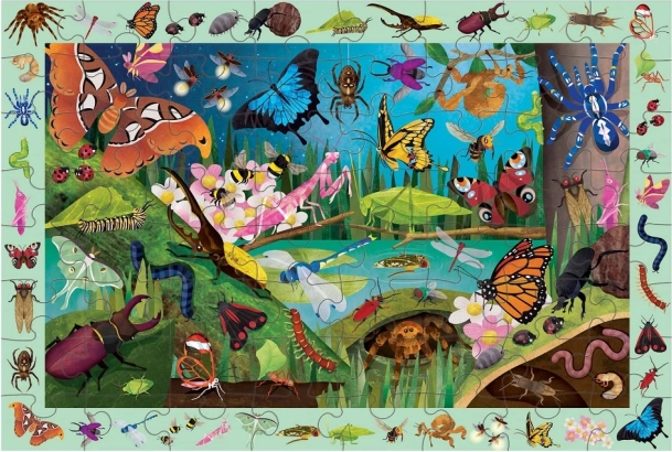 Po složení puzzle děti prozkoumají rámeček a najdou více než 40 druhů hmyzu – perfektní trénink pozornosti a soustředění.