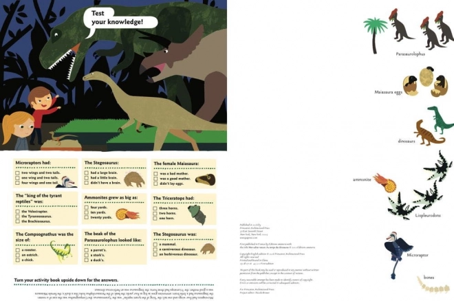 - 24 aktivit pro kreativní učení (např. nalepování zubů T. rexe, vybarvování plátů stegosaura)