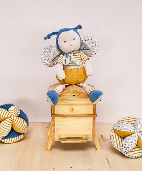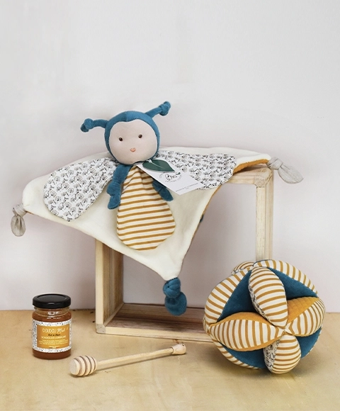 Textilní aktivní míč Včelka je perfektní hračka pro malé děti. Jeho měkká textura zaujme děti a podporuje hmatovou stimulaci a snadné uchopení. Tento míček obsahuje integrované chrastítko, které upoutá pozornost a přispívá k rozvoji sluchu.