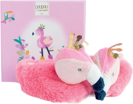 Heboučké botičky z příjemného plyše udrží nožičky miminka v teple a pohodlí, zatímco hravý motiv plameňáka dodá outfitu špetku fantazie. Díky dárkovému balení jsou připravené rovnou k předání – bez zbytečného balení navíc.