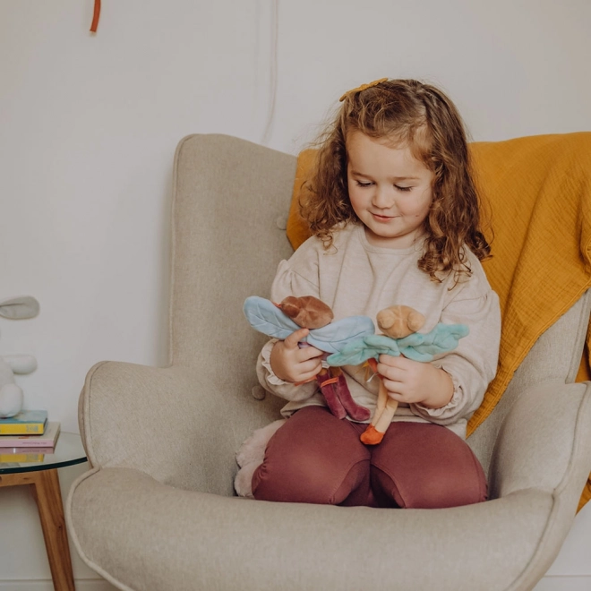 Seznamte se s panenkou Tara – něžnou motýlí vílou v fialových šatech, s modrými křídly a stylovými doplňky. Díky měkkým materiálům je ideální na mazlení i první hraní pro nejmenší. Vyšívané detaily obličeje zajišťují bezpečnost bez malých dílků.