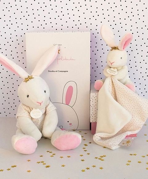 Tato dárková sada DOUDOU přináší bílého plyšového králíčka s puntíkovaným muchláčkem v kompaktní velikosti 10 cm, se kterým se dětem skvěle manipuluje už od prvních týdnů života. Hebký materiál a jemné barvy podporují uklidnění a smyslové vnímání miminka.