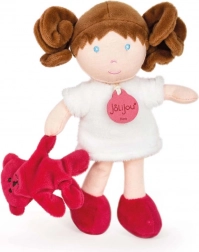 Tato panenka je navržena tak, aby přinášela radost a zároveň odpovídala bezpečnostním normám CE, ideální pro děti od narození. Vyšívané oči, nos a ústa dodávají panence osobitý vzhled, zatímco její kaštanové kadeře lze upravovat podle libosti.