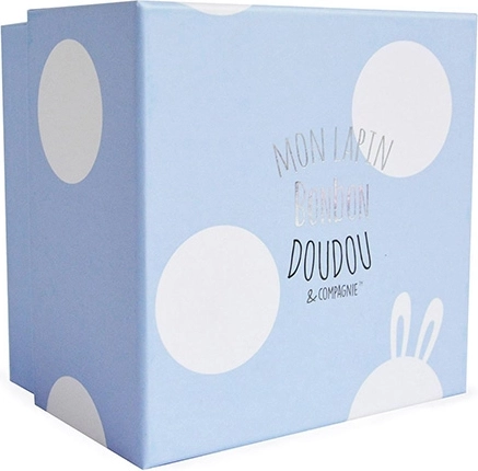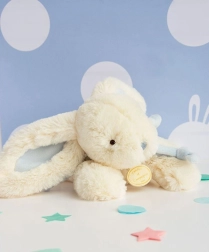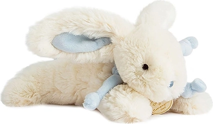 Tento krémově zbarvený plyšový králíček s modrými oušky je dodáván v nádherné dárkové krabičce, která vyzařuje modernost a luxus. Tato hračka je nejen příjemná na dotek, ale také splňuje evropské normy CE. Je vhodná jako ideální dárek pro novorozence.