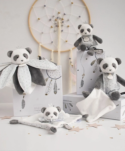 Heboučký muchláček ve tvaru pandy je ideální první kamarád pro miminko od narození. Přináší pocit bezpečí, uklidnění a podněcuje rozvoj smyslů. Vyniká prémiovým měkkým materiálem, malým a lehkým formátem vhodným do dětských ručiček a je dodáván v elegantní dárkové krabičce – perfektní volba k narození dítěte i na Vánoce.