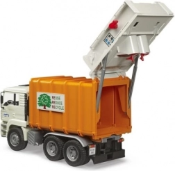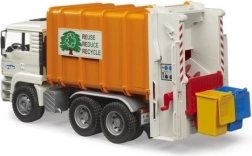 Realistický popelářský vůz BRUDER MAN TGA v měřítku 1:16 nadchne malé i velké fanoušky techniky. Má naklápěcí kabinu, funkční lis s dvojicí šnekových dopravníků, otevírací zadní dveře se zámkem a dvě přiložené popelnice. Vyroben z odolného ABS plastu v Německu, kompatibilní s figurkami Bworld a ideální pro děti od 3 let.