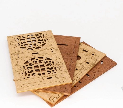 Krabička je vyrobena z kvalitního přírodního dřeva s detailními laserovými výřezy a působí rustikálně i elegantně. Skvěle se hodí jako netradiční dárkové balení, novoroční dekorace nebo malý dárek pro milovníky rébusů a únikových her.