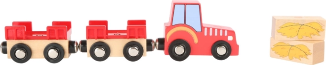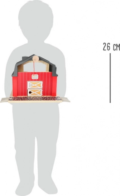 Tato dřevěná farma SMALL FOOT je ideální herní set pro děti od 3 let. Nabízí realistické herní prvky – stodolu s dvojitými vraty, funkční jeřáb pro uskladnění sena do patra a magnetické balíky, které lze snadno zvedat a převážet přiloženým traktorem s přívěsem. Součástí je také kůň, kráva, prasátko a šest dílů ohrady.