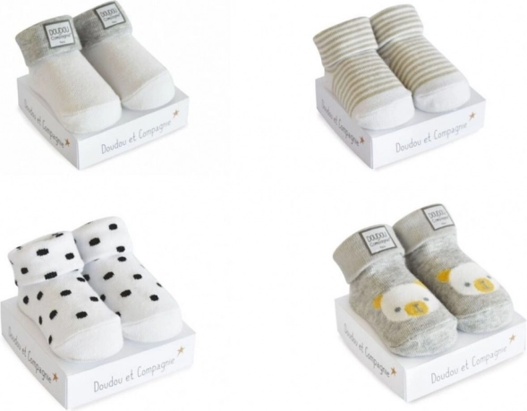 Hledáte milý a praktický dárek pro novorozeně? Dárková sada DOUDOU přináší univerzální kojenecké ponožky pro věk 0–6 měsíců. Díky vyvážené směsi bavlny, polyesteru a elastanu jsou ponožky jemné k citlivé pokožce, zároveň držící tvar a dobře sedící na nožičce.