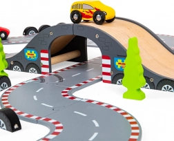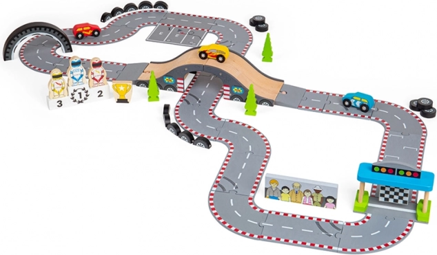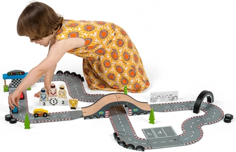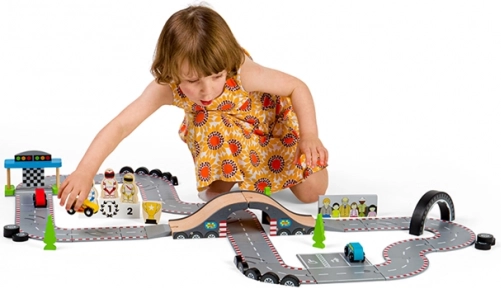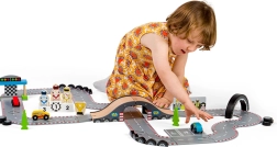 Hra s touto autodráhou pomáhá rozvíjet koordinaci pohybů, jemnou motoriku a podporuje představivost. Vyrobeno z výrobního surovin dle současných evropských bezpečnostních norem. Lze kombinovat s dalšími sadami Bigjigs Rail a rozšířit tak herní možnosti.