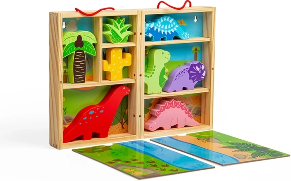 Tato přenosná hračkářská krabička s motivem dinosaurů je ideální pro děti od 18 měsíců, které chtějí objevovat svět dinosaurů a rozvíjet svou kreativitu a představivost. Podporuje kreativitu a představivost, díky svému provedení je snadno přenosná a ideální pro cestování.