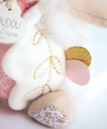 Tento hebký zajíček kombinuje hned tři funkce v jednom: muchlací mazlíček, jemné chrastítko pro rozvoj sluchu a držák dudlíku, díky kterému bude dudlík vždy po ruce. Prémiový měkký plyš zaručuje příjemný dotek a bezpečné mazlení už od prvních dní života.