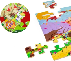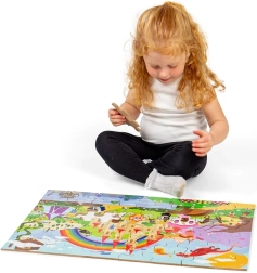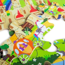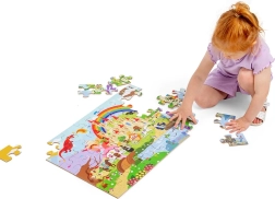 Podlahové puzzle Bigjigs Toys Fantasy svět přináší dětem hravý vstup do říše kouzel a nadpřirozených bytostí. Velké, snadno uchopitelné dílky z pevného dřeva usnadňují skládání, rozvíjejí koordinaci ruka–oko a učí rozpoznávat barvy a tvary. Ideální první větší puzzle pro malé objevitele.