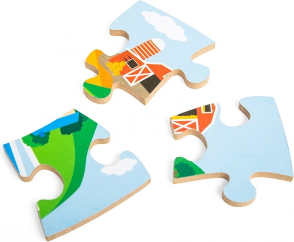 Kruhové puzzle ve větším rozměru je ideální pro společné skládání a přehledné poznávání celého obrázku.