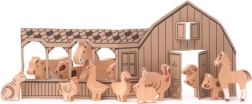 Tato kvalitní sada zahrnuje oblíbená hospodářská zvířata: koníka, hříbátko, kozu, pejska, prasátko, telátko, krávu, krůtu, husu, kachnu, slepici, ovečku, králíka a kočku. Díky pečlivému zpracování z bukového dřeva jsou figurky příjemné na dotek, stabilní a ideální pro každodenní hraní.