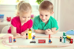 Díly se snadno skládají, vlakové soupravy se propojují pomocí magnetů a odolné dřevěné komponenty slibují dlouhou životnost. Ideální pro rozvoj hravého učení – od prostorové představivosti po koordinaci oko–ruka.