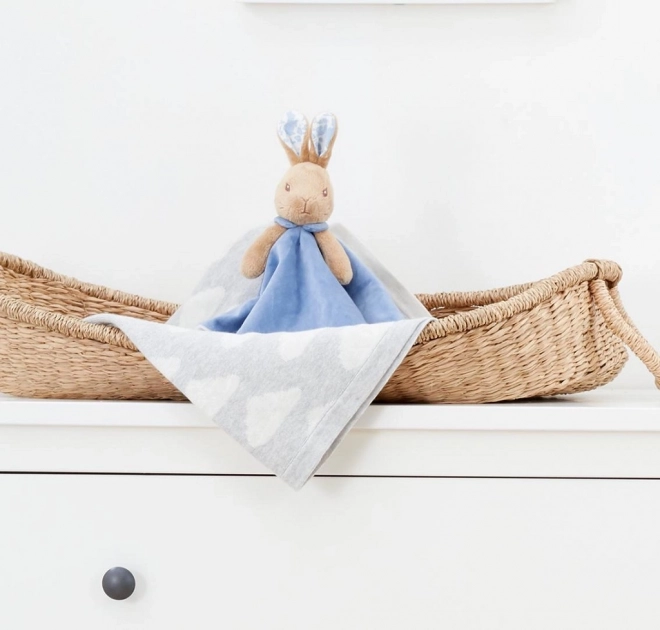 Králíček s modrou přikrývkou, který je esteticky přitažlivý a uklidňující.