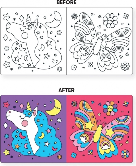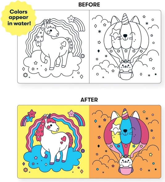 Kouzelná koupelnová knížka Unicorn Dreams zaujme děti při koupeli svými měnícími se barvami. Jednorožci ožívají ve vodě, což děti nejen zabaví, ale také rozvine jejich poznávací dovednosti.