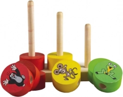 Veselé pyramidy s barevnými disky a postavičkami, které děti zaujmou a povzbudí k dalšímu hraní.