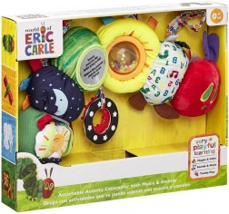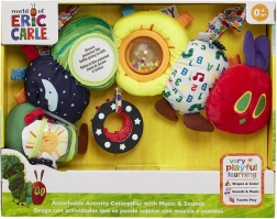 Oblíbená postava z pohádky Very Hungry Caterpillar ožívá jako barevný textilní plyšák plný aktivit, který stimuluje smysly, podporuje raný vývoj a trénuje jemnou motoriku. Housenka se kroutí, chrastí a přehraje ukolébavku „Třpyť se, třpyť se, hvězdičko“. Díky různým texturám, zrcátku, štítkům a připojitelnému kroužku zabaví miminko doma i na cestách.