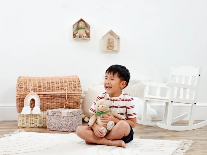 Myslí na přírodu i bezpečí – je vyroben z udržitelných materiálů a má výplň z recyklovaných plastových lahví. Elegantní zelená mašle/šála a květinový vzor na tlapkách z něj dělají nádherný dárkový kousek. Dodává se v krásně ilustrované krabičce s prostorem pro osobní věnování.